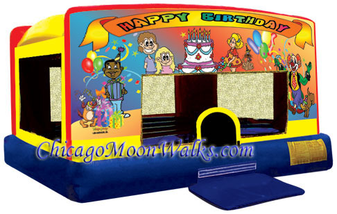 | 4-1 Indoor / Outdoor Happy Birthday Combo Moonwalk Bouncer Rental 15' L x 13.5' W x 9'10" H |