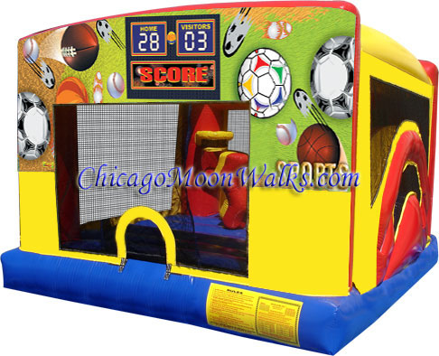 | 4-1 Indoor / Outdoor Sports Theme Combo Moonwalk Bouncer Rental 15' L x 13.5' W x 9'10" H |