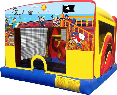 | 4-1 Indoor / Outdoor Treasure Island Pirates Combo Moonwalk Bouncer Rental 15' L x 13.5' W x 9'10" H |